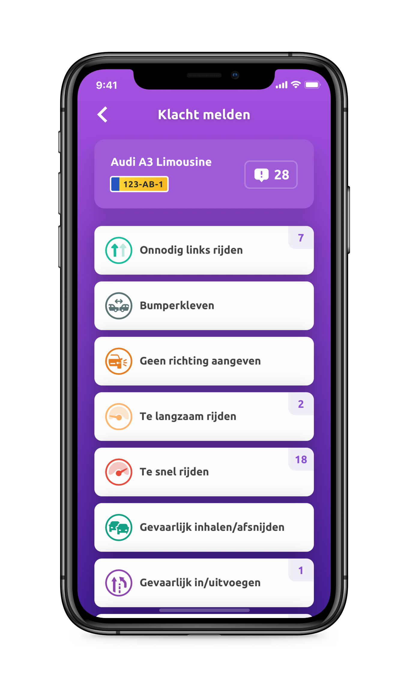 Zie je iemand een actie uit halen die niet door de beugel kan? Laat het hem weten via een Klacht in de Bumper app.