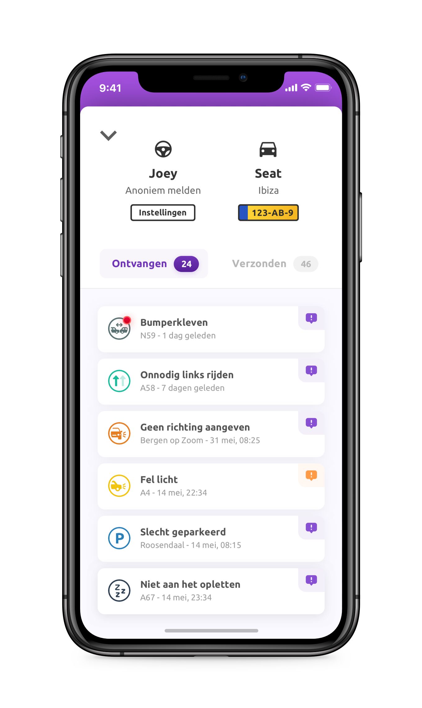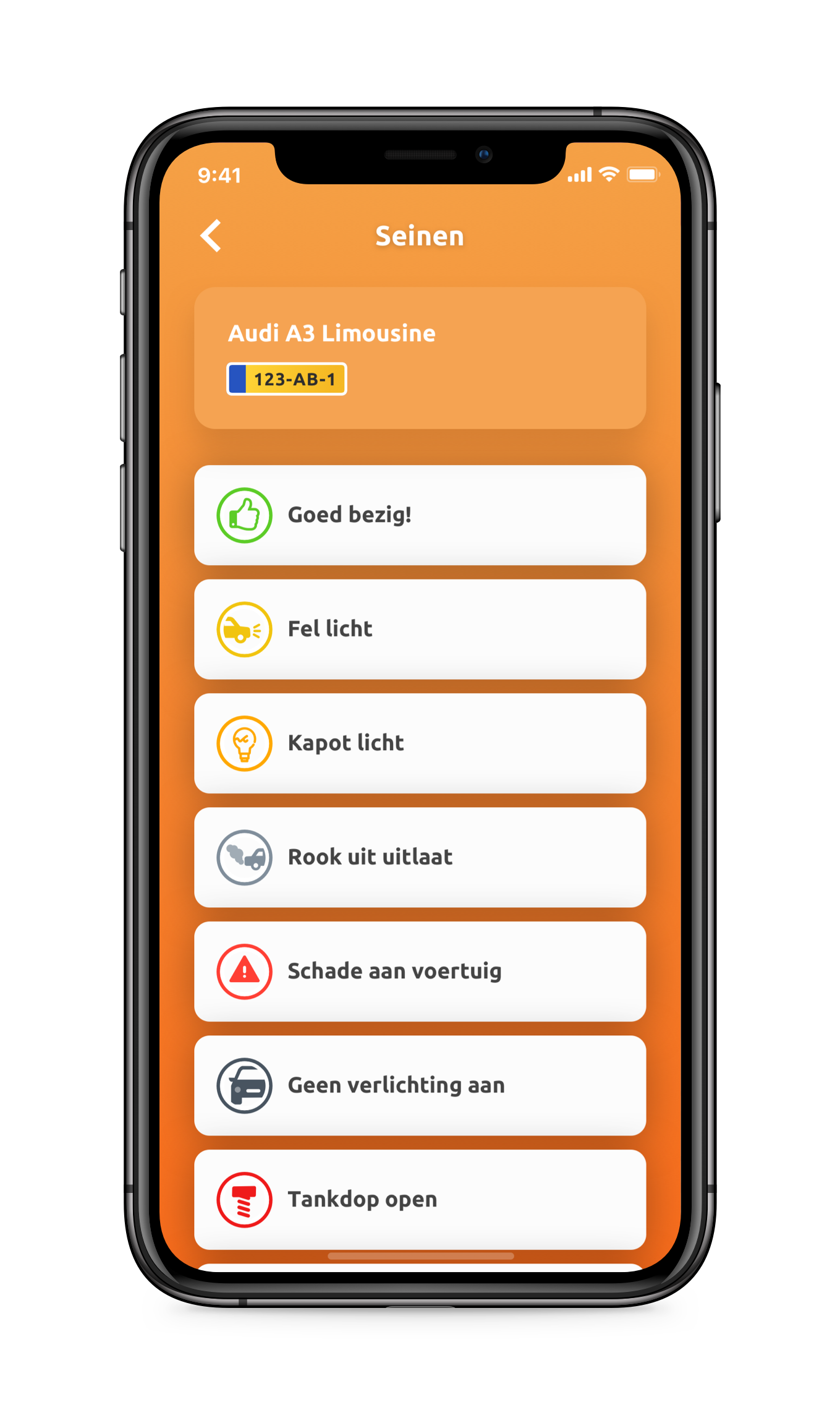 Zie je iemand rijden met een bijvoorbeeld een kapot achterlicht. Laat het hem weten via een Seintje in de Bumper app.